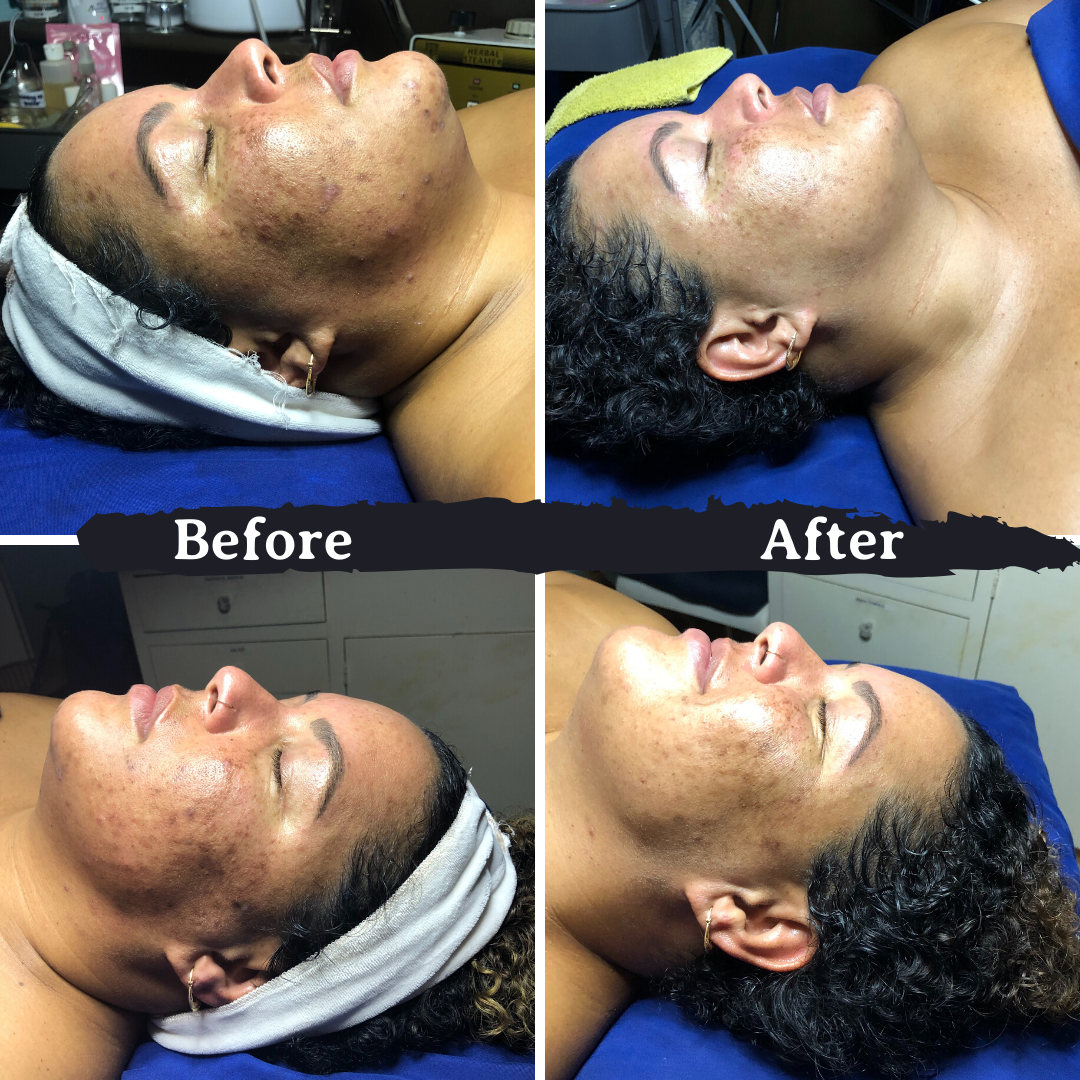 This client received the Pomegranate Enzyme Facial with a 20% Lactic Acid boost, a powerful exfoliating facial for Post Inflammatory Hyper-pigmentation. Following proper home care and bi-monthly facials improved clients skin in 6 months.